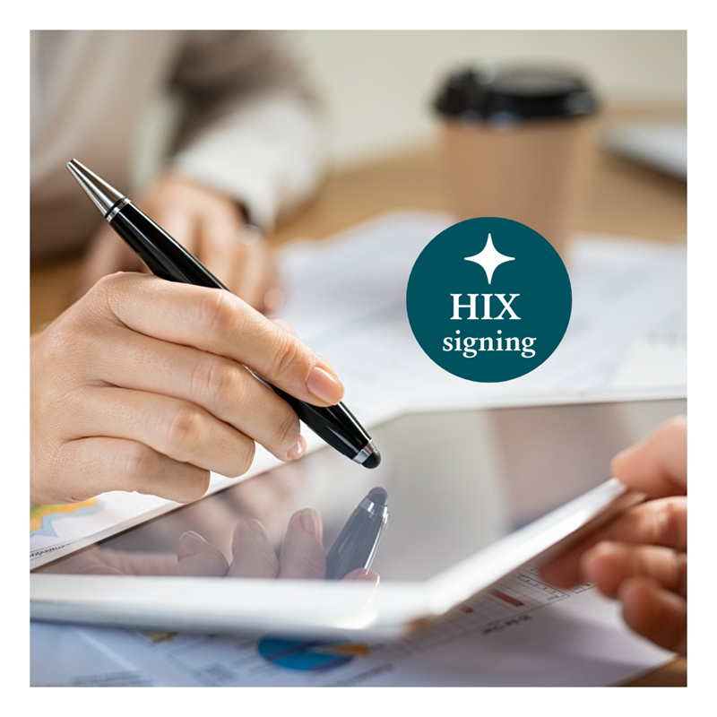 Met HIX Signing gaat ondertekenen sneller dan ooit, maar bewaar je documenten zelf, want er is geen dossiervorming meer.